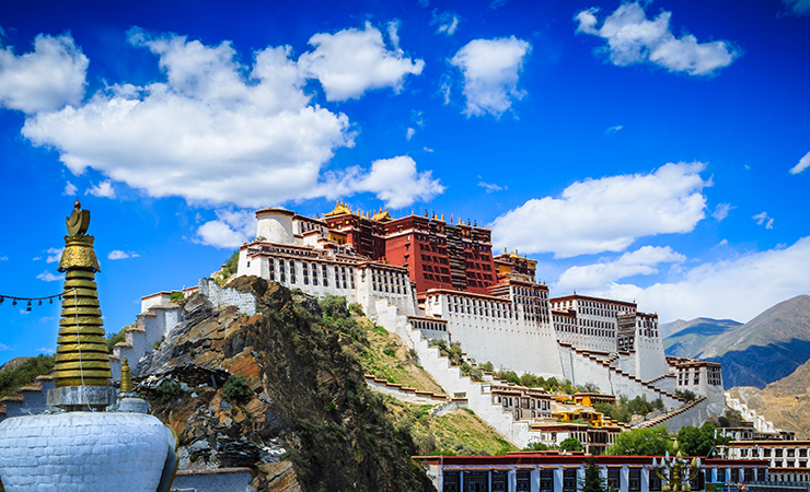 布達拉宮最初為吐蕃王朝贊普松贊干布為迎娶尺尊公主和文成公主而興建。1645年(清順治二年)清朝屬國和碩特汗國時期護法王固始汗和格魯派攝政者索南群培重建布達拉宮之后,成為歷代達賴喇嘛冬宮居所,以及重大宗教和政治儀式舉辦地,也是供奉歷世達賴喇嘛靈塔之地,舊時與駐藏大臣衙門共為統治中心。1988—1994年再次大規模修繕。
